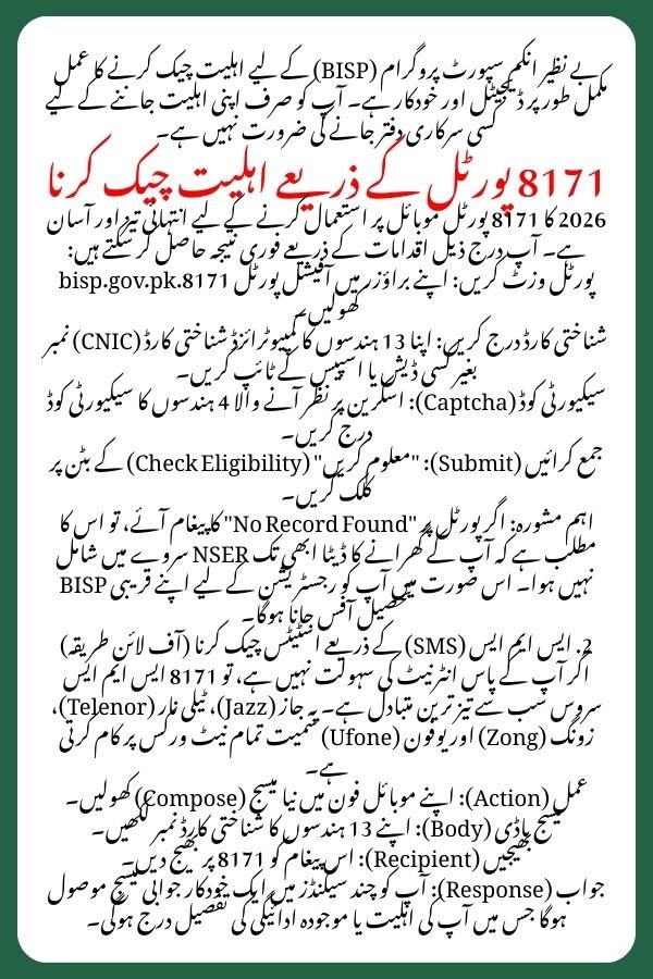 The 2026 version of the 8171 portal is designed to be mobile-friendly and fast. You no longer need to visit a BISP office just to ask, “Am I eligible?”