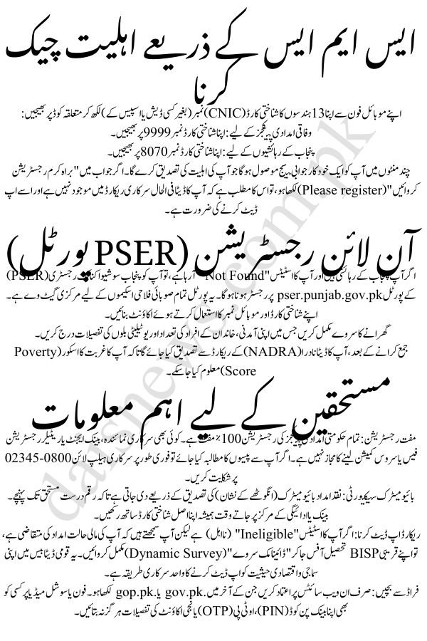 • For Punjab Residents: Send your 13-digit CNIC number to 8070.